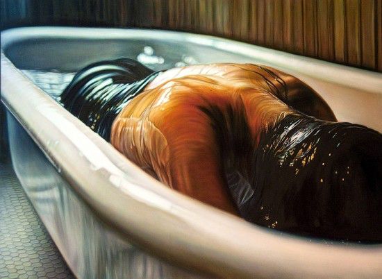 Mexican-born painter Ana Teresa Fernandez holds a master’s degree in Fine Arts at San Francisco Art Institute and has exhibited internationally in Mexico and South Africa. Her paintings attack the double standard imposed on women, showing them performing menial tasks like laundry and sweeping.