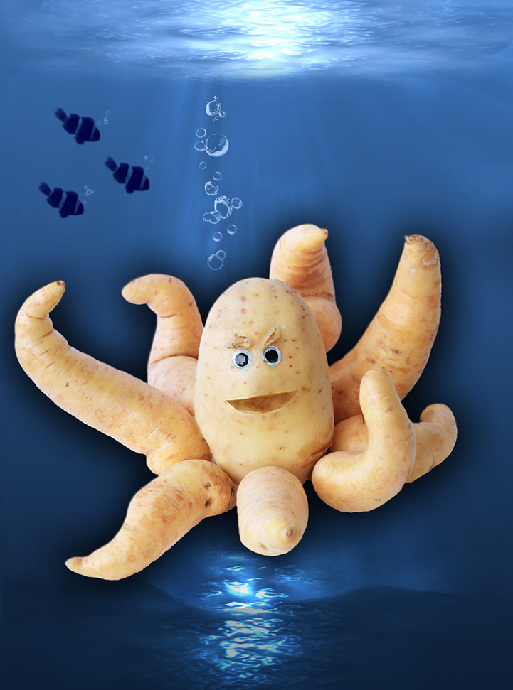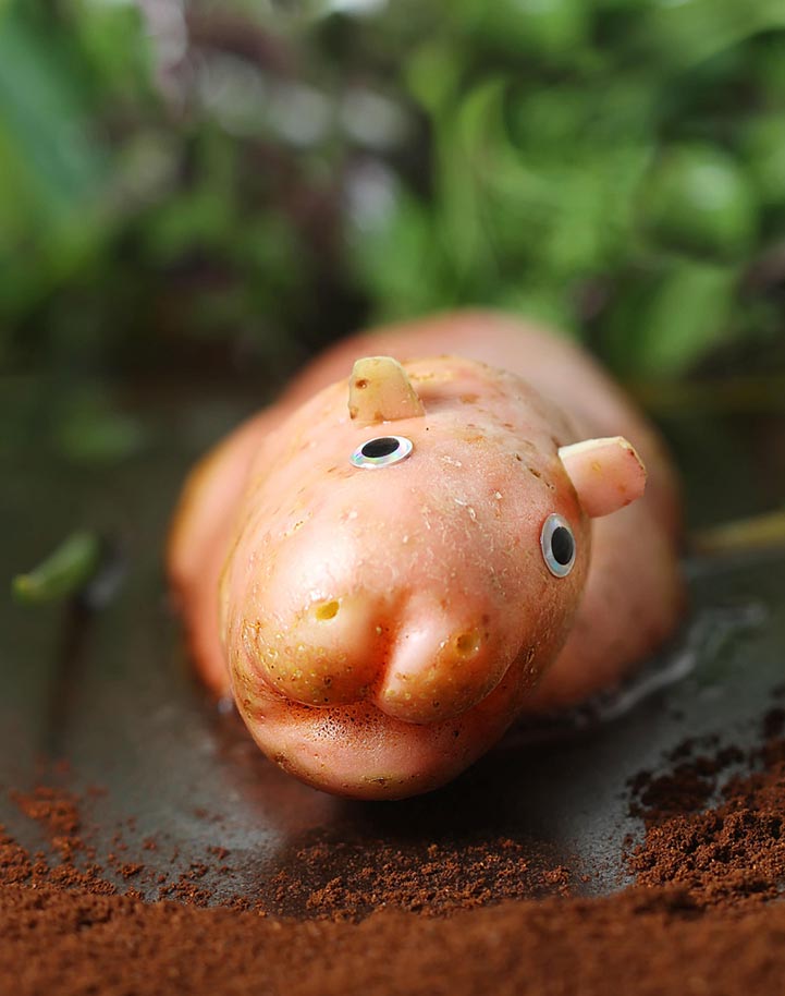 This amazing project will make anyone and everyone smile their heart out. She used conceptualization, imagination and amazing carving to reshape them. Her pieces are unique and are paired with imaginative stories, quotes which are funny and these sculptures come to life. She has even names for a lot of them like potato dinosaur – A potato saurus Dulcis, Wasp berry and the eight legged potato catsup Each one is a piece of adventure.