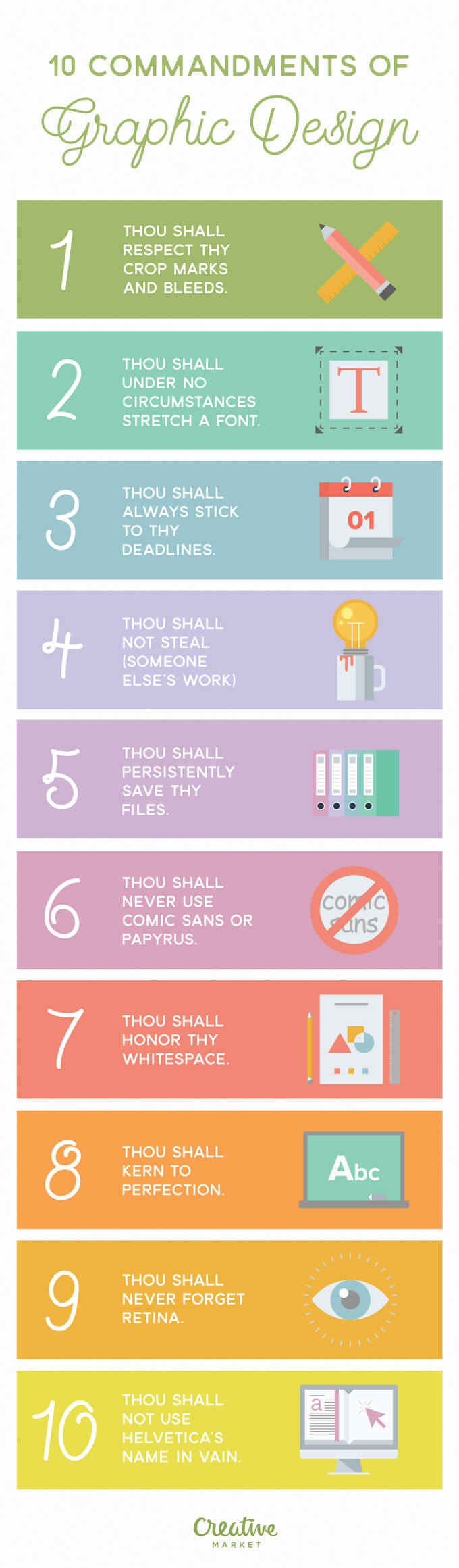 This is true that the beauty of design lies in its endless options, But creation of design is not easy. Designer strictly keep these ‘10 Commandments divine rules of Graphic Design’ in mind to improve your work. All designers should follow these divine rules of Graphic Design to improve there work. Creative Market has combine 10 divine rules together. Here are 10 principles that we preach and practice every day. Also Read : Religiously We Should Follow These 7 Logo Design Principles