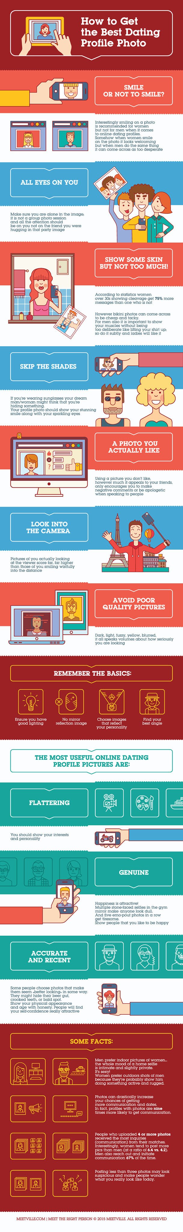 You can increase your chances of getting more communication and dates, You can win or lose a someone’s attention with your profile pictures, and it’s not because of your looks. We have already hosted previously about 6 secrets to be more photogenic as like celebrities. What you’re doing in the pictures can affect how you’re perceived, and with the right pictures, you might be able to catch a few more eyes and invites in your inbox. Yes, there’s more to loving a relationship than physical attraction and mating and dating, so no need to point out that out. And yes, these bits of guidance apply to both men and girls. And yes, who am I to be giving advice about what people look like. OK… But we all respond initially to appearance, so a few basics are worth keeping in mind. This infographic by Meetville will help to make taking that perfect dating photo a snap. Also, read Common Photography Mistakes and How to Fix Them.
