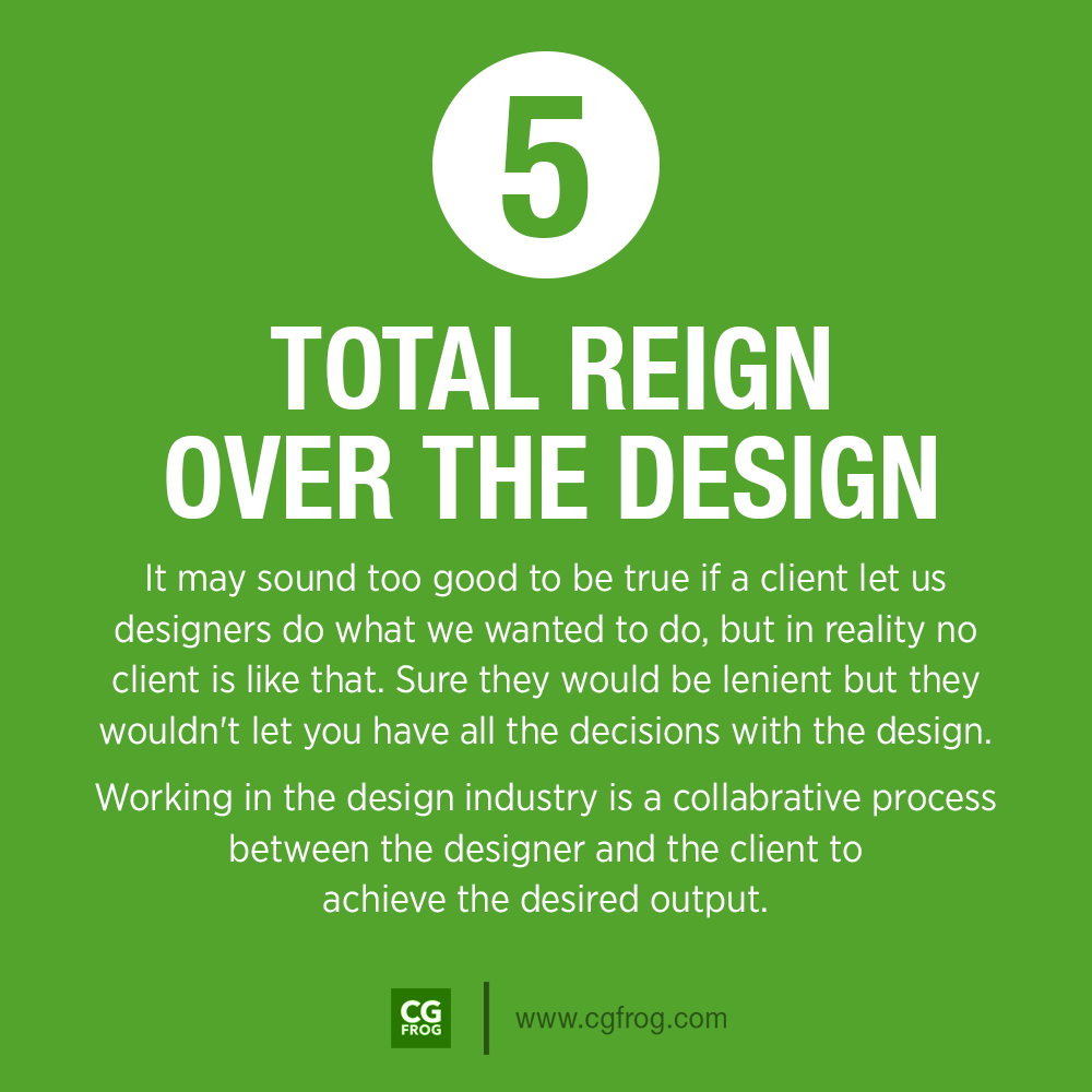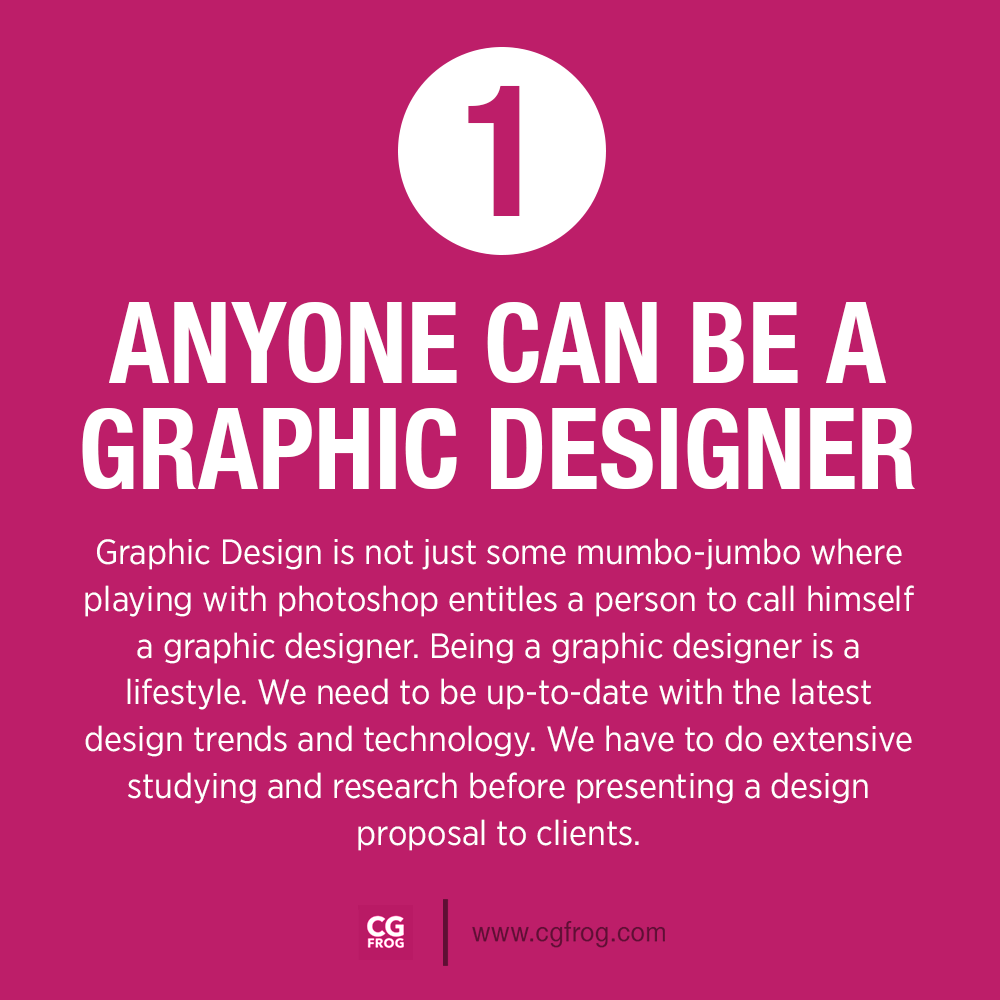 5. Total Reign over the design4. Fixing design as fast as a flick of the Wrist3. Graphic Designers are natural born creatives2. Design is only done on the computer all the time1. Anyone can be a Graphic Designer
