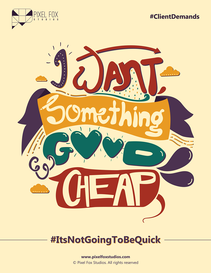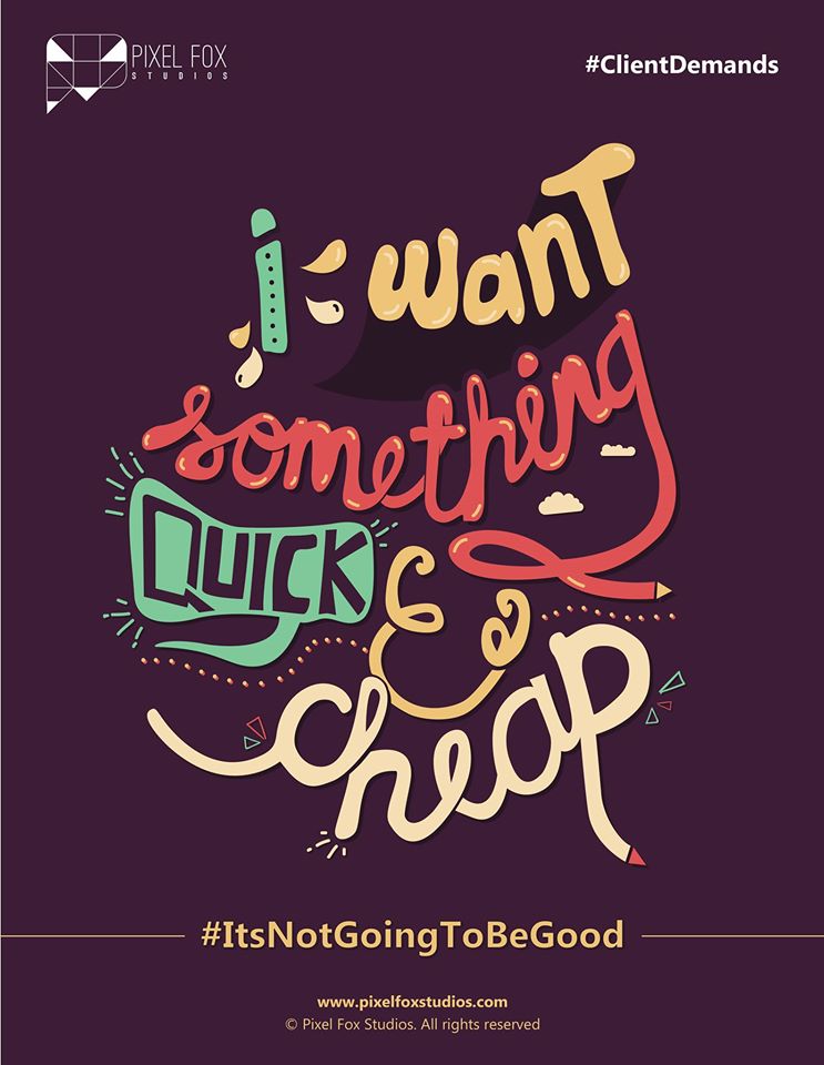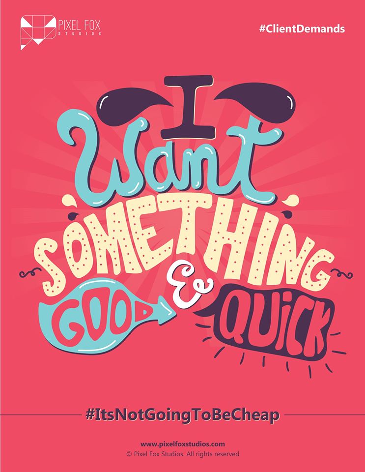 After superb typography poster series of #ClientBargains, A Mumbai based design creative agency Pixel Fox Studios has creates an another series of typography posters “#Client Demands”. If your clients are looking out for something good, quick and cheap, you totally have to show them this.. Checkout the poster below.