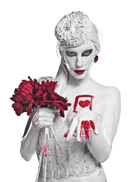 Albuquerque photographer – Wes Naman uses red secrete liquid on body to capture romantically expressive portrait valentine series.