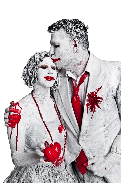 Albuquerque photographer – Wes Naman uses red secrete liquid on body to capture romantically expressive portrait valentine series.