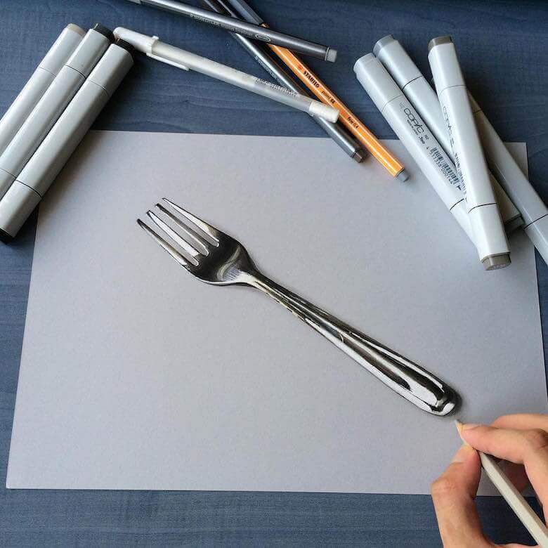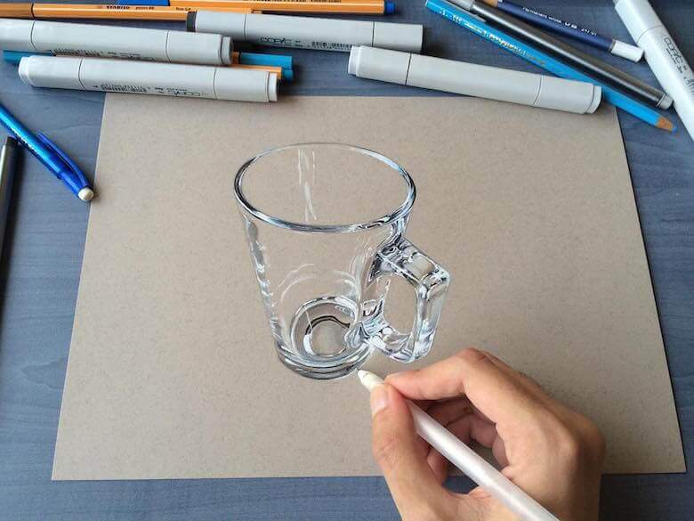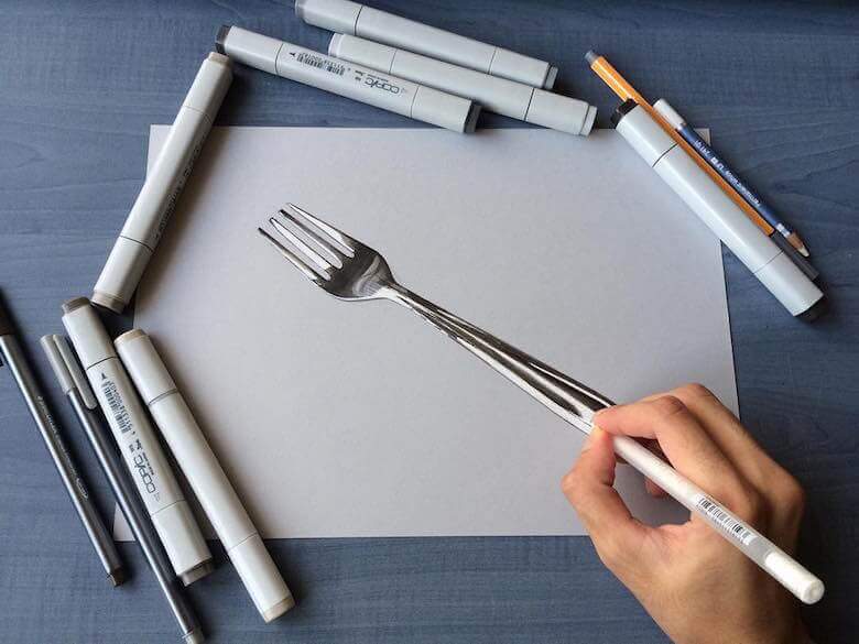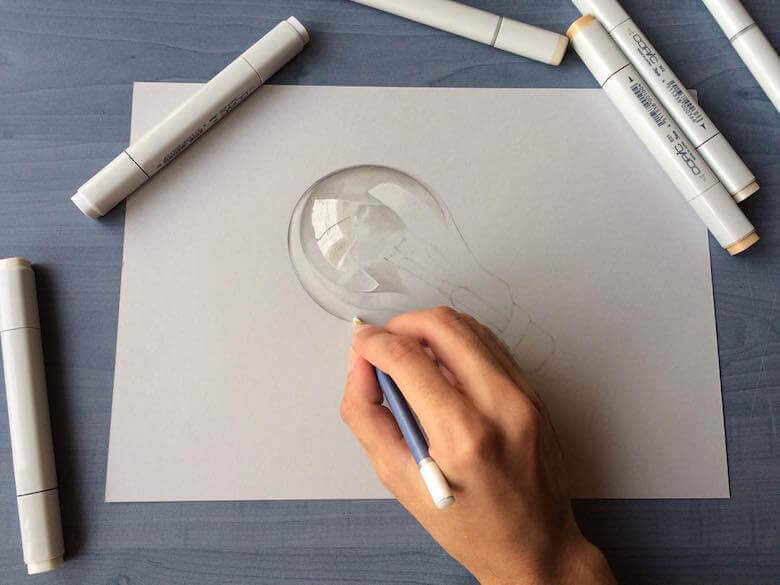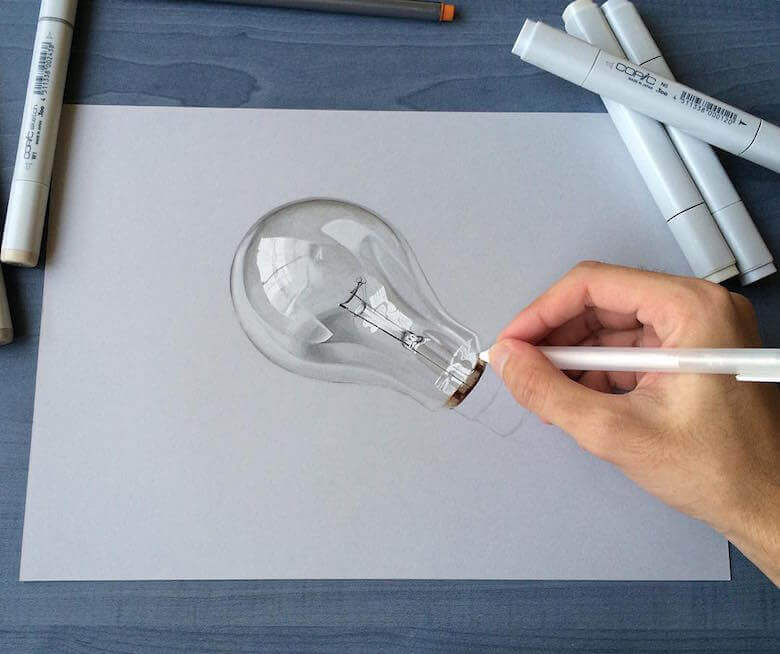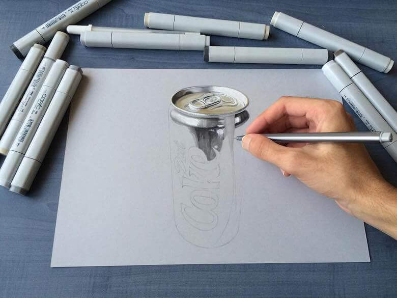 A Mumbai based creative artist Sushant S Rane creates mind blowing hyper-realistic 3D drawings of everyday objects like cans, bulbs, glasses and even half fried eggs etc onto a blank sheet of paper then photographed to create amazing optical illusions. He works with Copic markers and graphite pencils and Sushant S Rane usually takes a single day to complete a single artwork. Sushant S Rane is currently a student of ‘Bachelor of Arts’ at Ramnarain Ruia college in Mumbai (India). He claims to possess been self-educated since childhood.